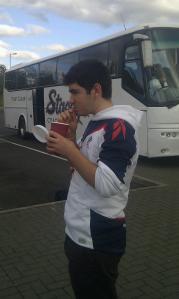 They began to sing abusive songs towards us, and I actually thought it was going to kick off. Some of them even followed me to the toilets to shout abuse! One positive from our stop at the services was that we discovered there are at least 50 United fans from up North!*