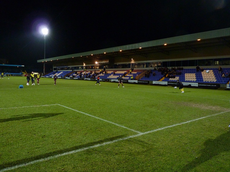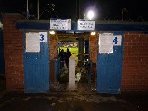See, this is the problem with not researching a ground before you visit. You don’t have a clue what to expect! Had I have known that I’d be on an open terrace on a cold, wet February evening I’d have stayed at home. Well, I wouldn’t have stayed at home… I’d have watched Leigh in exactly the same conditions, but at least that way I’d have been only a minutes walk away from my shower.