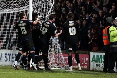 We ran across the bottom of the stand to celebrate with the players. We have even made it on a few of the official Bury matchday photos.