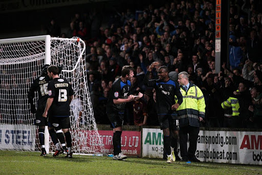Bury then took the lead on 69 minutes when Andy Bishop finished a Michael Jones cross. Now, our tiger suits had also given us the art of seeing in to the future. As Jones was running down the wing, our tiger instincts informed us that Bury would score. We ran down the steps and began to run towards the net… GOAL! Danny slipped, and I carried on towards where the players were celebrating. I don’t even know where Will ended up.