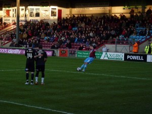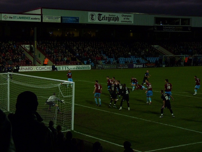 “You are not allowed to use that camera to take photos of the players in motion.”   Now, I have had this pathetic and quite ridiculous rule dictated to me in many ways. However, the ’players in motion’ bit did make me laugh. How pedantic do stewards want to be? From this small encounter with one of my fluorescent friends I concluded that the stewards at Scunthorpe are idiotic… and I wasn’t wrong.