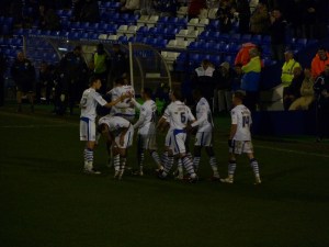 71 minutes and Bury were inches away from scoring a deserved equaliser. A corner kick flew in, and the ever present Joe Skarz volleyed towards goal, only to see his effort blocked on the line. Bury then won a freekick from the resulting clearance. The freekick swooped in, and Mark Hughes headed marginally over the bar – much to the despair of the following Bury faithful.