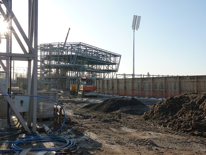 We arrived at Old Trafford station, and I was eager to see what work they had done at the cricket ground since last time I was there for England v India. It looked like a bomb had hit it! The ‘Chewits Family Section’ is no more; you’ll all be pleased to know! For those of you who don’t know what the Chewits Family Section is, it is the non-alcohol section which we often get dumped in for England internationals and the Yorkshire matches.