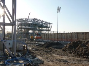 To my near left was the smallest stand at Old Trafford; the South Stand. The South Stand is where all the executives and VIP’s sit, along with the players and media. The concourse floors are made completely of renewable sources; Fergies chewing gum, and former players boots. This was done by the club in an attempt to battle global warming.