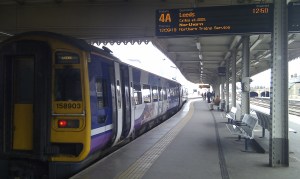 We had to wait a further 15 minutes for our train to Sheffield, which was making the long trip to Norwich. Whilst on the platform we got speaking to a bloke who works for Chorley FC, he was off to Worksop on the train after being kicked off the team coach for the trip! Soon enough the train turned up, and it was a 2 carriage special by East Midlands Trains – One positive? It was on time!