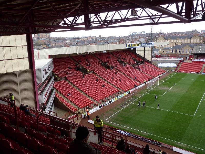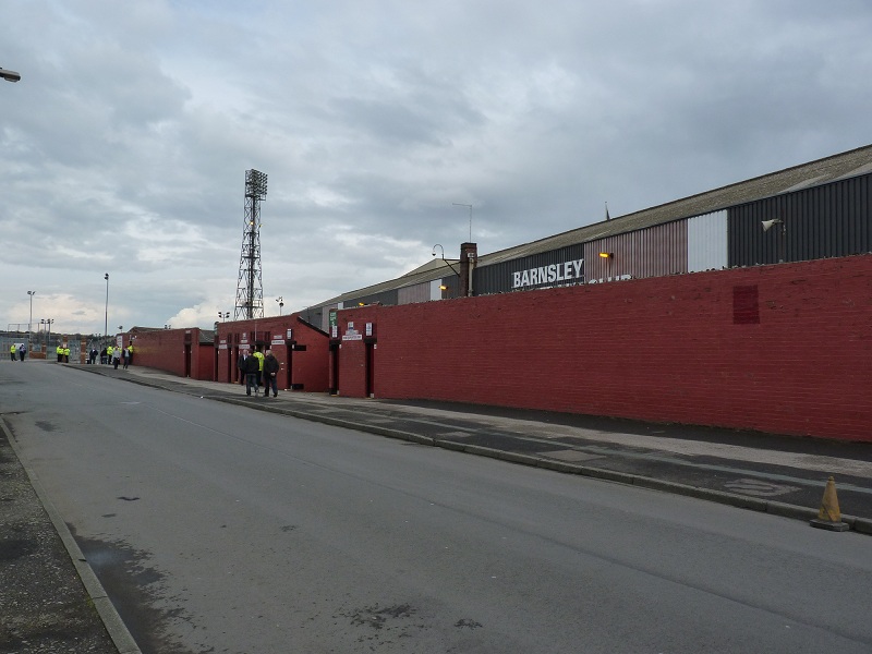 We got off the train in Barnsley, and it was extremely quiet. Yes we were early, but we expected a bit more excitement that what we found. Originally we were going to walk up the ground, purchase the tickets, and then walk back into the town centre for something to eat. As so often is the case, plans change.