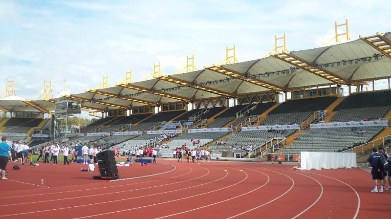 I had chosen to sit in Block 6 – Upper. It offered a better view than that available on the Lower Tier, and I had a great view of the finish line!… And the Long Jump sand pit! Behind me were the media facilities, which was quite entertaining in itself. The bloke who was commentating on the match from a Hereford point of view had to do his introduction several times and he kept forgetting his words.