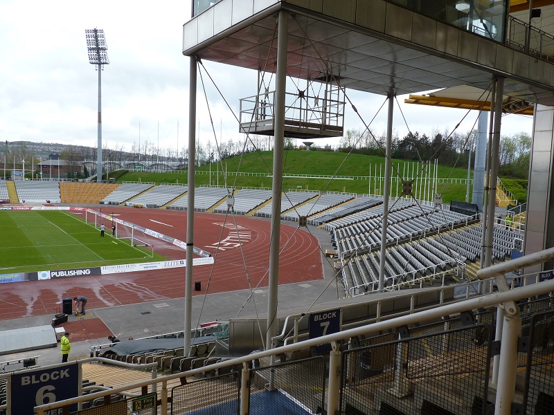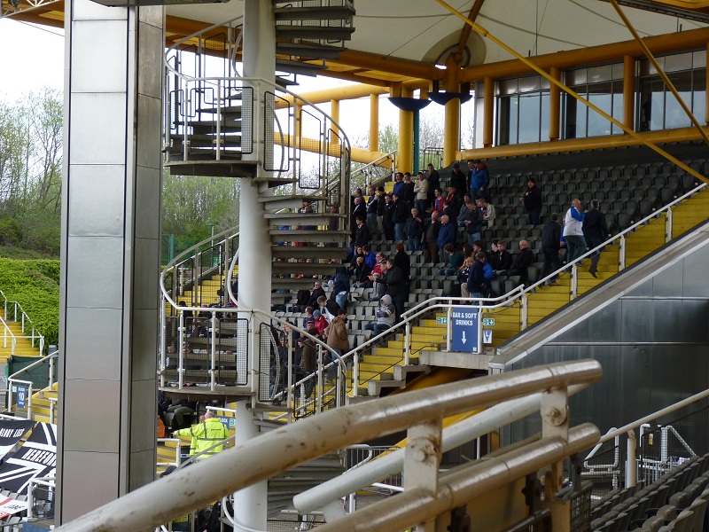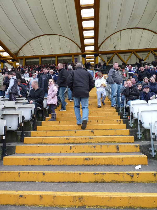 During football matches, only the Main Stand is open. The Main Stand holds 10,000 spectators with the majority of them being home supporters. The away supporters are given a small paddock away to the right hand side of the stand.