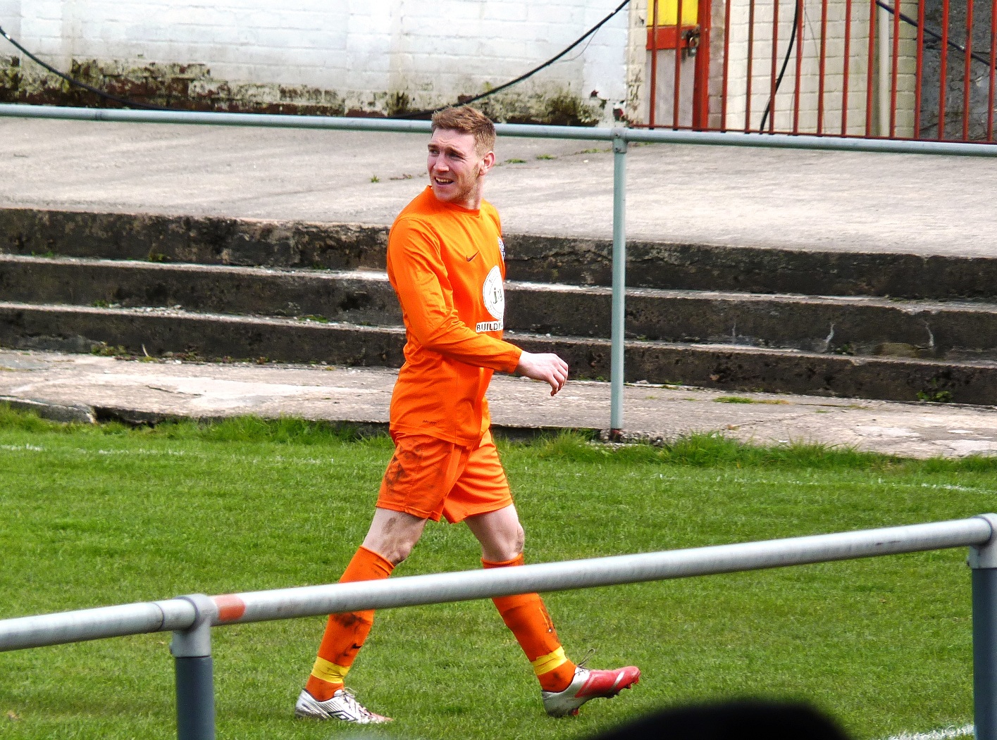 It was whilst eating my pie that the Atherton Collieries team came out behind us. They were sporting a fluorescent orange Nike kit, which in all fairness was like marmite; you either love it or hate it. I don’t know why they weren’t in their usual Black and White kit, either way… red and orange clash!