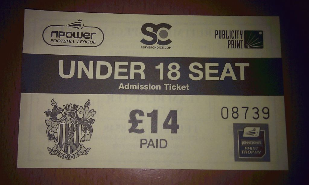 I had brought along last seasons matchday ticket so we could find where we were sat. It was a day of reminiscing really. I don’t think anybody was expecting this match to surpass the fantastic occasion we all witnessed last season. Well, I say all, there were quite a few fake Stevenage fans in attendance for this important fixture.