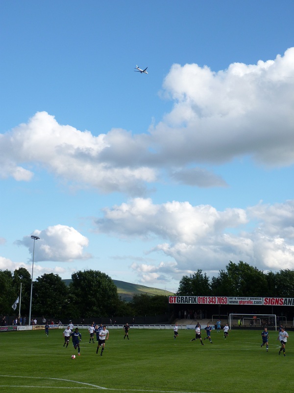 After a very cramped 20 minutes on the Northern Rail special, I arrived in the lovely town of Mossley. Found just to the east of Manchester in the hills, it was a beautiful setting in which to kick off the new season. I honestly don’t think I will see such lovely scenery at a football ground again for a long time!