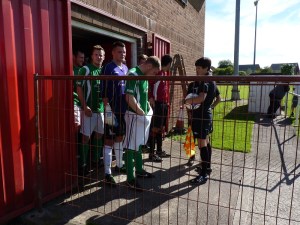 The sun was still shining, and the teams were led out by female referee Jane Simms, to the sound of “Build Me Up Buttercup”. What on Earth was going on? Was I dreaming? (I am of course joking. I thought Jane did very well, and her dance along with the song was very impressive). The only thing which could have topped Janes performance was if the Abbey Hey female physio would have joined her on the pitch for a dance. She probably wouldn’t have turned down the opportunity, she always seemed a bit too keen to get on to the pitch. Okay, okay. Enough. Back to the match.