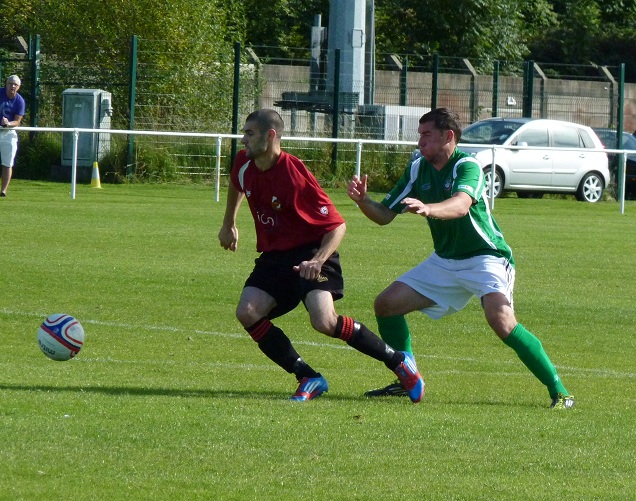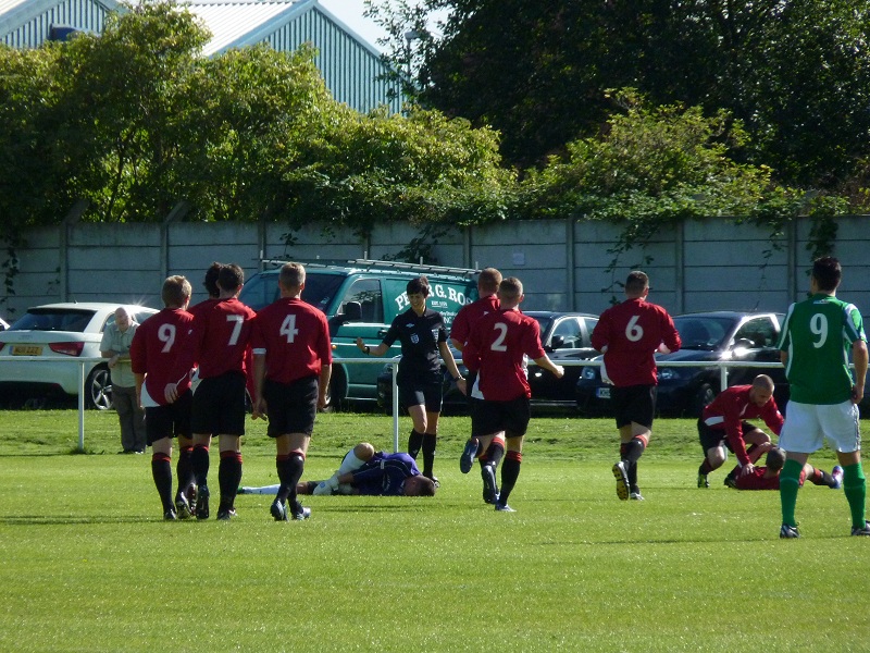 The away side then took the game by the scruff of the neck, and began to enjoy a lot of prolonged possession. Paul Prescott came close on 14 minutes, but his shot went just wide of the post. For all of Athertons possession and skilfull play, they rarely threatened to penetrate the Abbey Hey backline, much to the frustration of Emil who you could now hear from the other side of the ground.