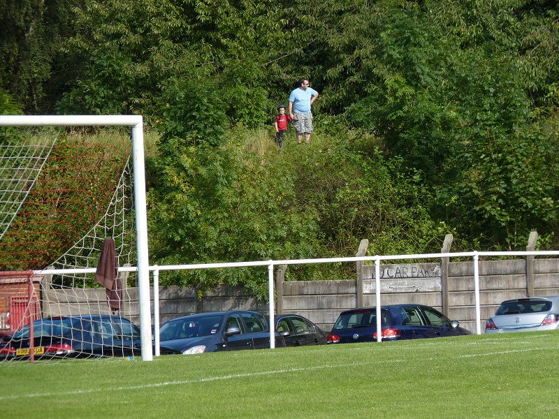 The final chance of the first half came when Brad Cooke curled a free kick just over the bar from 25 yards out. He nearly hit the strange lads who had turned up at the match, and had decided to set up a game of jumpers for goalposts behind the goal. Still… at least they weren’t the cheap man who was watching non-league football from the top of a nearby hill!