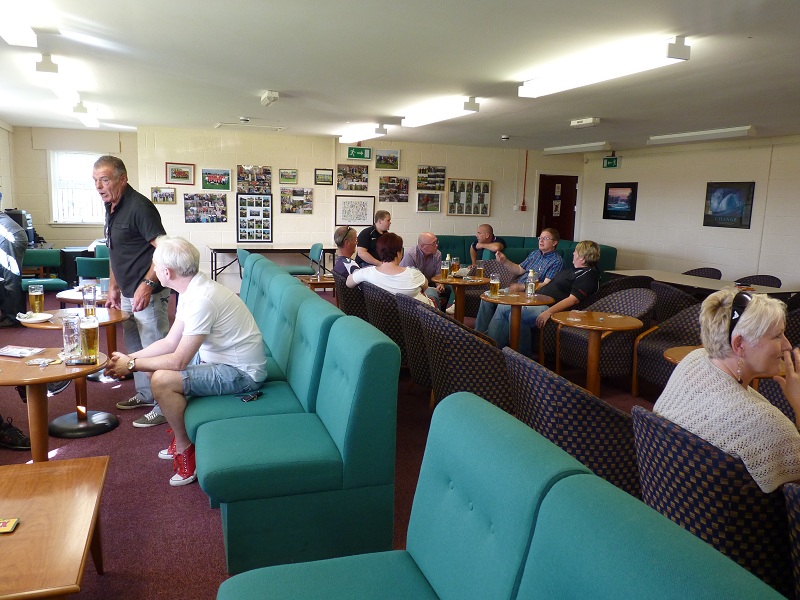 Arriving at the ground we were greeted by two friendly and helpful blokes who directed us to the clubhouse where we could get a drink. I knew that Tony and Johnny would probably be up there partaking in pie photoshoots and other such groundhopping festivities, so up I went. No sooner had I walked into the room I saw both of them sat on the nearest table; both being their usual unsociable selves, typing away on their phones. Maybe this was how they were communicating? After all, Johnny has been suffering with toothache for well over a week now! Perhaps his ability to come out with brilliantly timed one liners was no more?