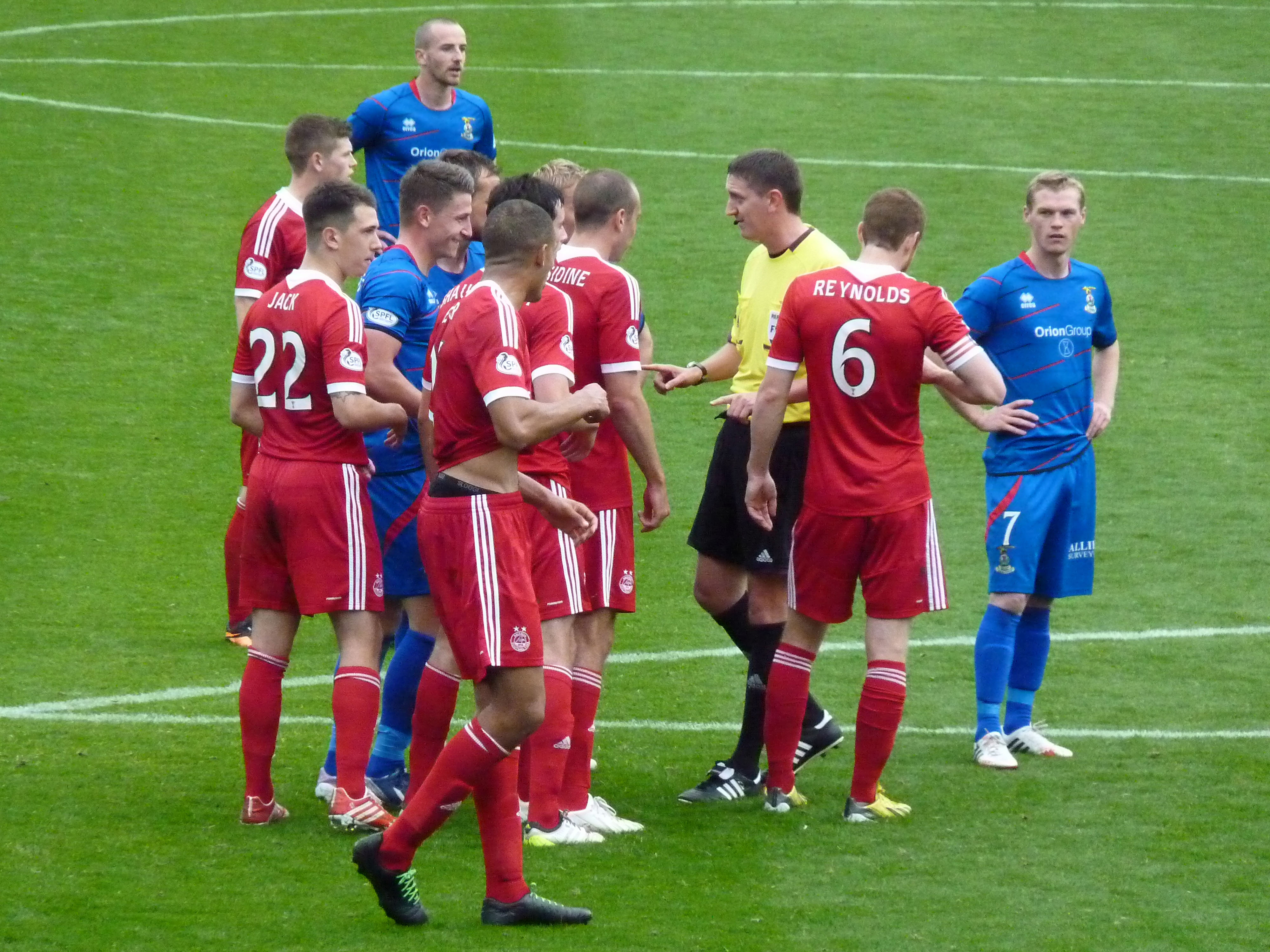 P1360023Tensions eventually boiled over, resulting in Aberdeen’s Michael Hector and Inverness’ Graeme Shinnie being booked after a spout of handbags. I don’t even know why Shinnie was carrying it on. It was blatantly obvious who would win if it was to turn into a real fight!