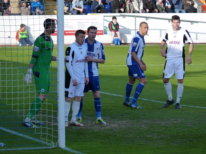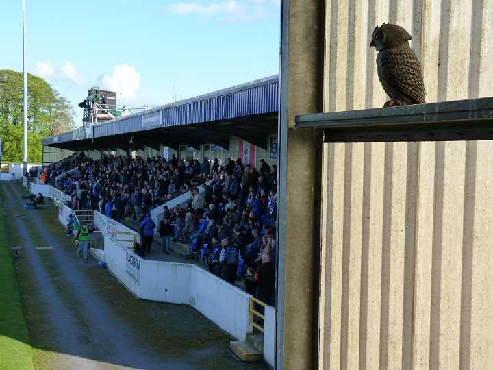 The home side were getting on top and they soon took the lead through Danny Carlton. The former Morecambe and Bury striker guided Jason Jarrett’s effort past Will Puddy to send the home faithful wild. Puddy was probably put off by the vast amount of abuse that he was receiving from the spectators who were in front of us. Even the plastic owl which was stuck to the stand was nodding his head in disapproval at the Jeremy Kyle types that had been allowed through the turnstiles.