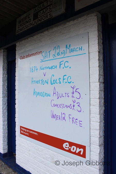 We headed back into the clubhouse where the players were treated to a large buffet whilst the West Ham v Man United match was being projected on to a big screen. The 1874 fans stuck around to see the post match presentations before we headed back to Atherton. Overall, it was a very good match to watch and it could have gone either way. In the end, a fair result between two sides who didn’t stop trying throughout. I may be one of the more vocal sceptics of 1874 Northwich, but the attitude of their fans and committee is a credit to non-league, even if they do take it a bit too far at times.