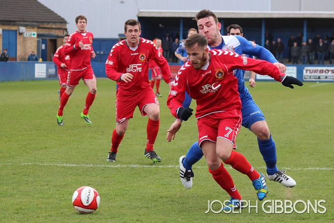 The only goal of the match came on 24 minutes after Sam Walker won a free kick around 25 yards out. He was fouled in a manner that wouldn’t have been out of place at a Leeds Rhinos rugby league match. Walker curled the ball in towards the back post and Simon Woodford was on hand to apply the faintest of touches to help the ball into the back of the net.