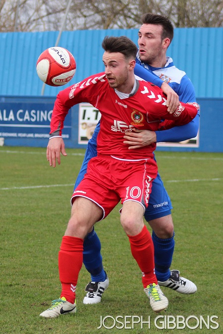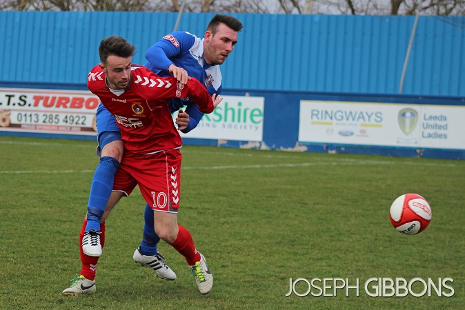 The visitors had the ball in the net again just a minute later, but Niall Cummins was adjudged to have pushed the Farsley defender when competing for the header. Half time arrived and we headed to the clubhouse to save ourselves from following Andy Watson’s shot over the fence into Bradford.