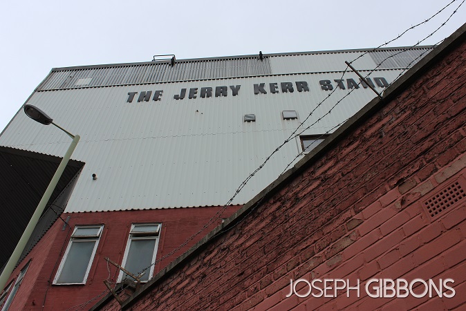 We were sat in the lower tier of the George Fox Stand – one of the two stands built in the 1990’s. This one was finished in 1992 and named after the former chairman of the club. Opposite stood the Main Stand, which consists of the Jim McClean Fair Play Stand and Jerry Kerr Stand which both join on to each other. The Jim McClean Fair Play Stand was opened in 1997 as an extension to the Jerry Kerr Stand, replacing the Fair Play Enclosure which was originally funded by money gained from UEFA.
