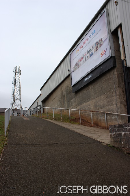 Walking into the ground you are taken on to grey concourses that are clean and have televisions which challenge Atherton Collieries for the title of “Oldest television in football” – ours is 34 years old apparently. We could just about make out the score from the Forfar v Rangers match which was being shown live, while people queued up for the food which was on offer at extortionate prices. The pitch is below street level when stood in the George Fox Stand so when walking through the door into ground itself you walk down to your seats.