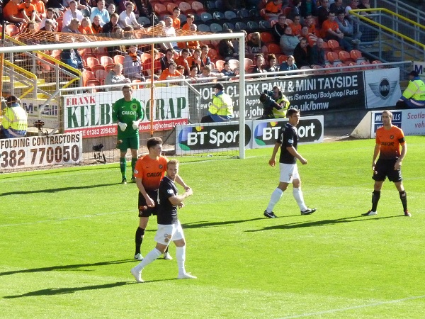 In response, Dundee withdrew the impressive Ryan Gauld to bring on Brian Graham and introduced David Goodwillie in place of Ryan Bow. It seemed like a bit of an odd decision, given Gauld was at the centre of a lot Dundee’s play, but Goodwillie was a sign of intent from the home camp.