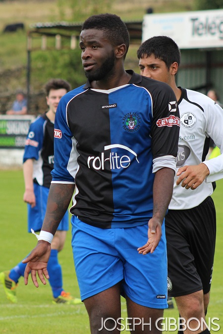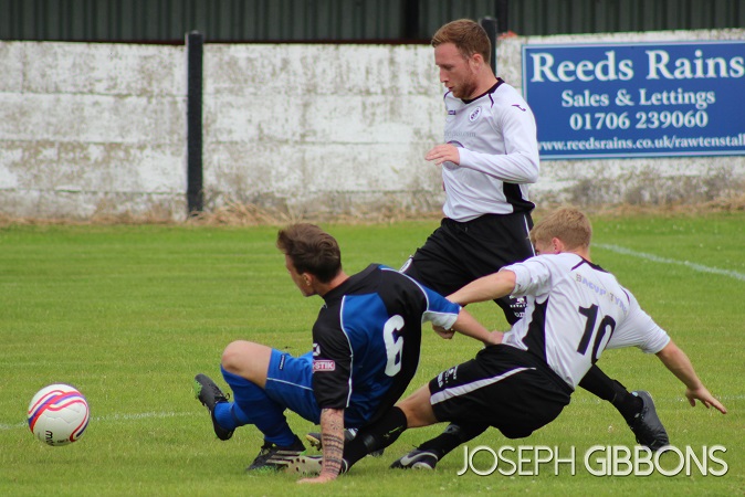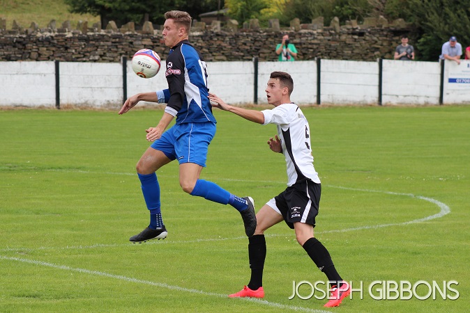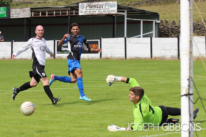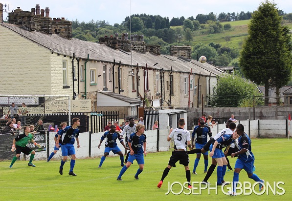 Minutes later and Bacup were level. The ball was pumped forward from the back and Adrian Bellamy flicked on for new signing Yves Zamma. The striker’s first touch saw the ball lobbed over the Ashton United goalkeeper from about 25 yards into the back of the net.