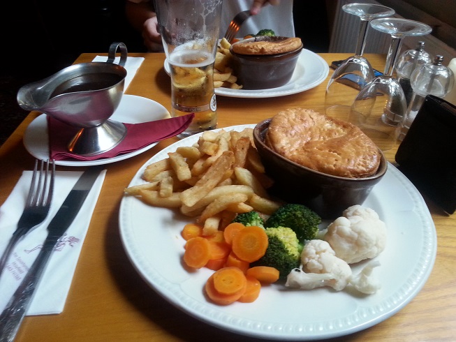 A quick dry off with a towel in the car and we were ready to have a much needed pub lunch in The Sportsman pub. A steak and ale pie (which I refused to class as a pie as it just had a pastry lid) and a Warsteiner beer (famous from my blog on Hertha Berlin) was a bit expensive, but we didn’t care. We needed food quickly as kick off time was fast approaching.
