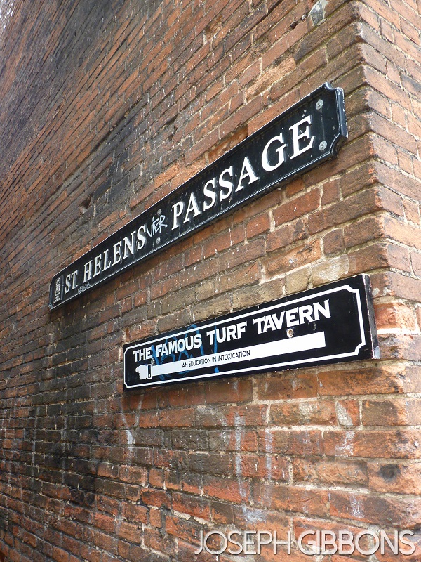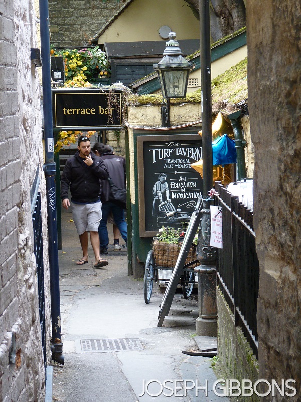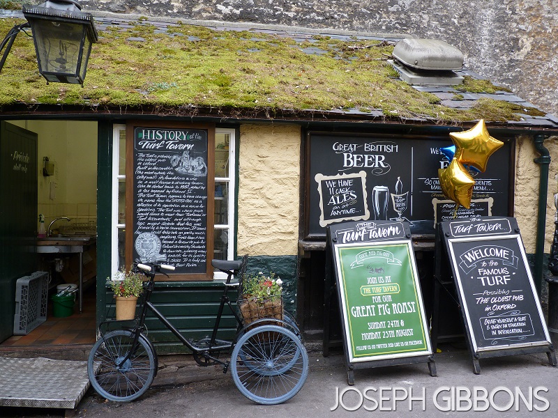 P1390483I arrived in Oxford not knowing which way to head and having not researched where to go. I had been given a recommendation to head to the Turf Tavern, which is a tourist type pub. Ideally, this would be my destination but I opted to find a map and pick out something mildly interesting to visit. The Indoor Market caught my eye and I headed that way. Rather fortuitously the Turf was close by and I soon found myself in this quaint establishment down a back alley; away from the hustle and bustle of gaggles of Chinese students who were having tours around the city.