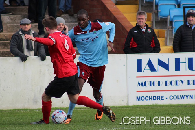 A minute later and Colwyn Bay were on the attack again, winning a free kick on the edge of the area. The ball was swung in and from the resulting failed clearance Obi Anoruo fired the ball past Hunt. The match had now been turned on its head and we didn’t have to wait long for the next goal.
