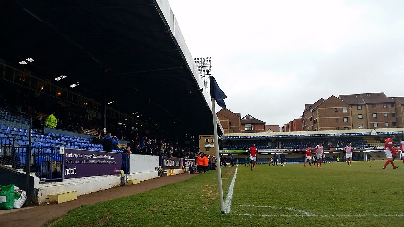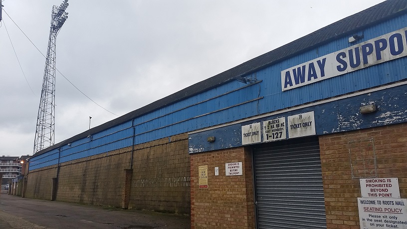 My first impressions of Roots Hall were positive. The away end looked so old and run down that it won me over straight away. A typical, old fashioned ground of which there aren’t many left of this standard. Despite the ground being renovated in large parts during the 1990’s it still retains the feel of an old ground, and the buildings which tower over the South Stand give the feel of a compact arena.