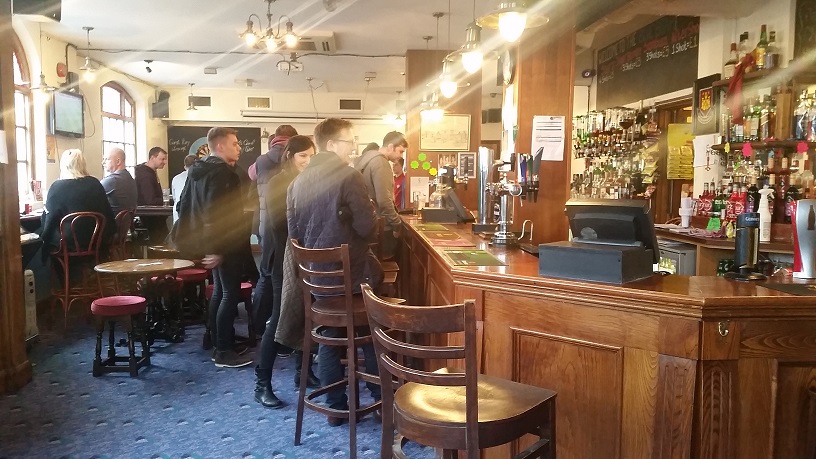 The stewards allowed us to park the minibus behind the away end and we set off in search of a pub. We were pointed around the corner to the Blue Boar which was pretty quiet when we arrived and in all honesty it didn’t get that much busier during the hour that we spent in it. It was a nice pub but it was £3.70 for a pint of Fosters, so I bought one and then topped it up with a can of Fosters that was in my bag. I am a poor student after all and I’m used to paying £1.50 for a pint back home in Atherton.