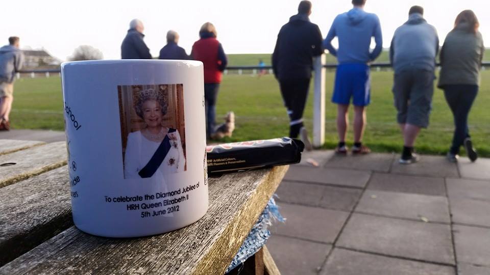 Half time arrived and we headed inside in the search of food. David was starving. “Do you do food?”, “Yeah, we do.”, “Great, what do you have?”, “Twirls, Mars, Blue Riband and Crunchies.” While our non-league virgin wasn’t expecting to be able to purchase a full meal he was hoping to get his hands on more than a piece of chocolate. I was quite happy with the selection available and bought a cup of tea in a mug with a mars bar. The mug was worth the purchase in itself as it celebrated Queen Elizabeth’s Diamond Jubilee.