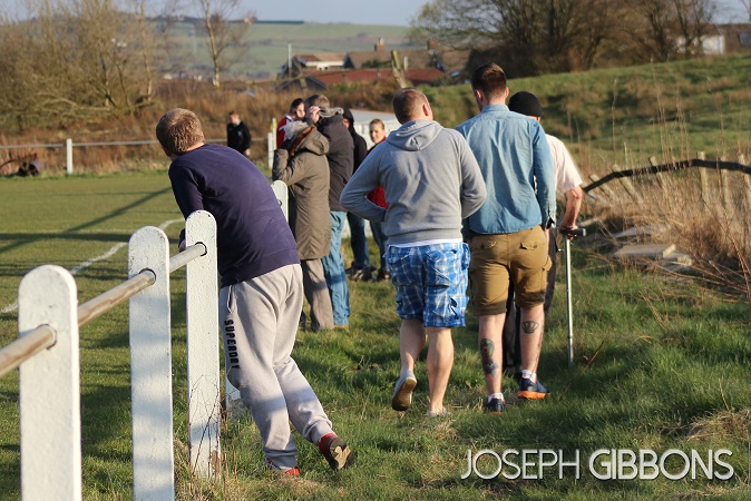 Approaching the end of a long ginnel the distinctive noise of footballs being kicked around during a pre match warm up came into ear shot. We had arrived and an old volunteer holding a beer glass full of admission money greeted us through a wooden fence. £2 to get into Turton for this Bolton Hospital Cup match with all money going to local charities.