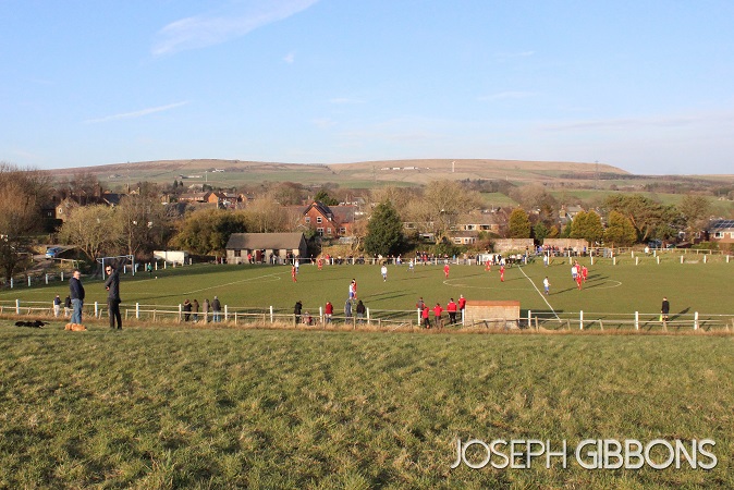 When the draw was made a couple of weeks ago, this match was due to take place at Prestwich but I assume with ground improvements ongoing to get the club ready for the NWCFL next season it was switched. Originally it was due to take place last week but bad weather meant it was postponed for a week. Fortunately for the four of us who made the winding journey to the hills in between Bolton and Blackburn it meant another match and another ground to tick off.