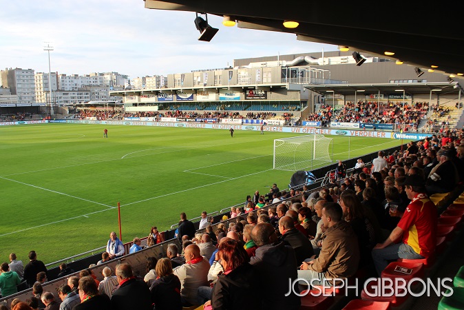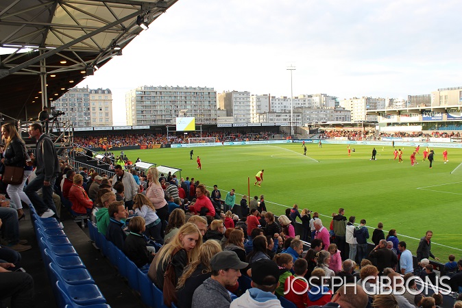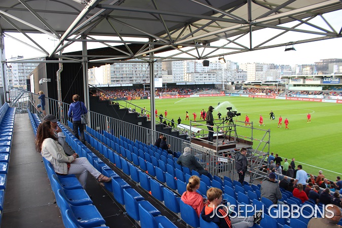 Oostende won promotion into the Jupiler League when they claimed the Second Division title in 2013. Being in the top tier of Belgian football meant the Albertparkstadion needed to increase capacity and we found ourselves sat in the newest part of the ground in a temporary structure. Even with this temporary structure in place, the ground was still the smallest top flight ground that I had ever visited, with a capacity of 8,000. In English league terms, this puts Oostende alongside Bath City.