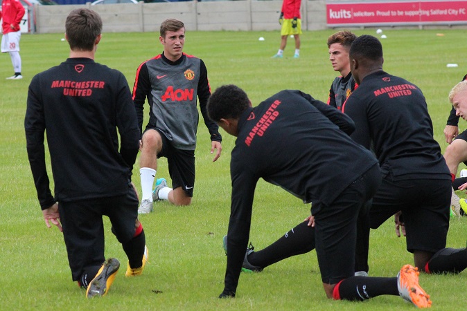 The visitors for this match were Manchester United U21’s, and they brought a sizeable following with them as expected. Lining up for Manchester United was Sadiq El-Fitouri who made national headlines last season when having played just one match for Salford was handed a trial at United with the help of Scholes and Phil Neville who had been impressed.