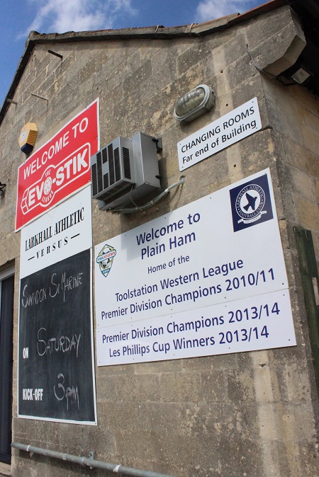 The Larkhall Inn beer garden was a pleasant place for a pre-match drink but I was itching to go and see the ground after three years of waiting. There appears to be two ways to reach Plain Ham. The first way which we went when we were doing a recce saw us do a u-turn in a housing estate before performing a sharp left turn and heading up an incredibly steep and narrow road. If anything was coming in the opposite direction we were knackered. Alternatively, there is an equally narrow and steep route on the other side of the town which is a bit more straight forward.
