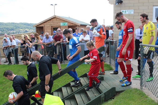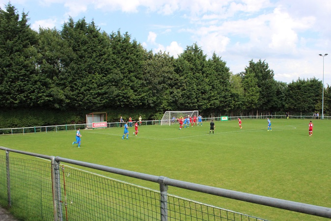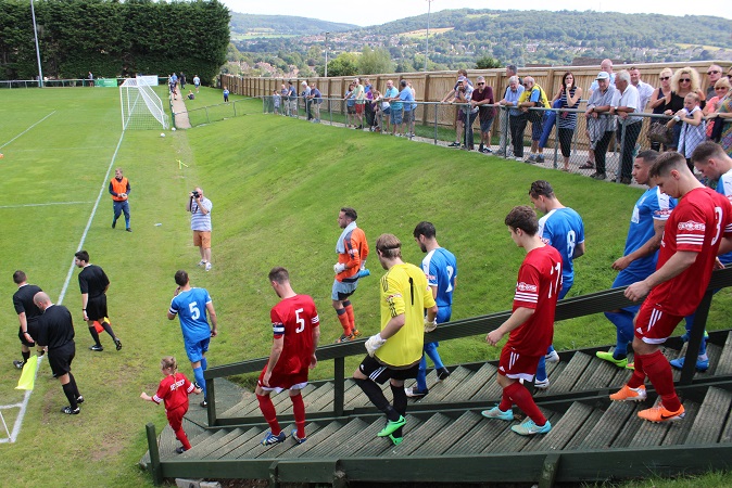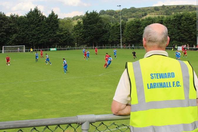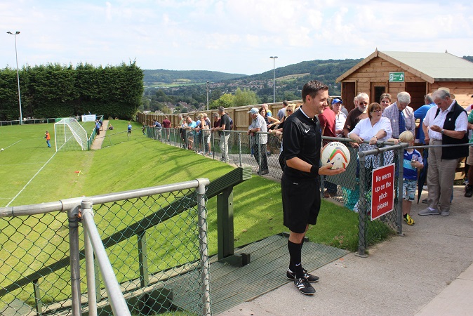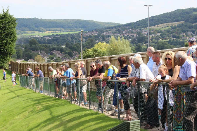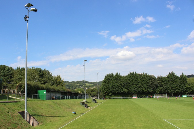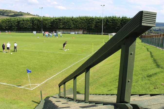 It was evident that many hours of hard work and a lot of funding have gone into Larkhall’s ground over recent years. Brand new turnstiles, perimeter fencing and toilets are just the tip of the iceberg. As you enter through the turnstile into the ground, the view quite simply is fantastic. In a similar style to The Etihad Stadium, you enter at street level and the pitch is sunken down into the ground in front of you. The players access the pitch down a large wooden staircase which scales down the hill at the near side of the ground. It’s a long way away from 1951 when the club reclaimed the land after it had been turned into allotments for the war effort.