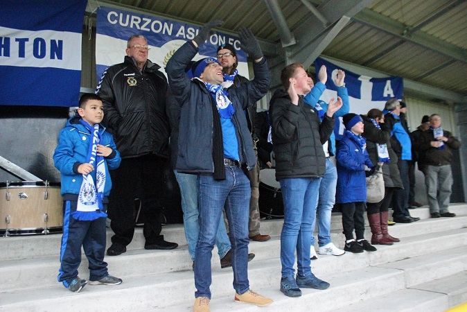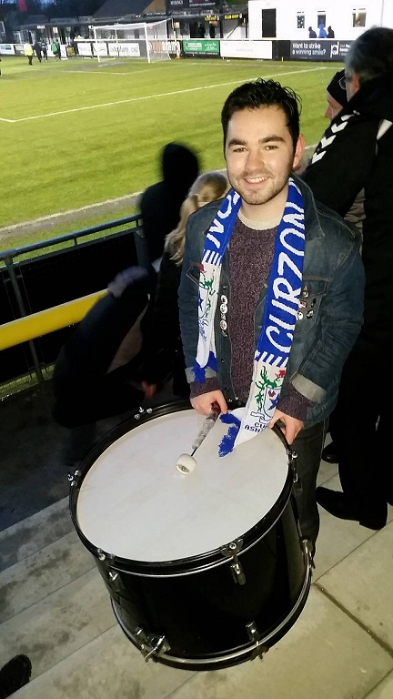 The Curzon Ashton flags and drum had all been set up in the far left hand corner of the Wetherby Road terrace. For some strange reason, the Harrogate Town fans also set up camp there and it looked for a moment like there would be a stand off. My initial reaction was wrong, very wrong as in the end both sets of fans stood together, singing songs together and enjoying each others company. It was probably the nicest atmosphere I have ever been involved in at a football match, so much so that a Harrogate fan took some time to write to Curzon Ashton after the match echoing the same thoughts:
