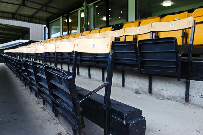Half time arrived and the rain was still driving in, meaning if we were to head back to the bar we would have got soaked. I had very unsuitable footwear on, so opted to stay in the stand while the Harrogate fans all moved to the other end of the ground in time for the second half.