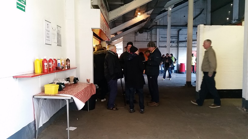 I was keeping my head down as I went through the turnstiles in the away end. I may or may not have been using an U18 ticket, which may or may not have cost me £5 as opposed to £24. My clean shaven appearance, short stature and puppy dog eyes gained me admittance and I was through on to the very cold concourse. The place was a bit of a dive, but I loved it. I love dives. Every part of the stand looked like it wanted to fall down and yet it was still beautiful.