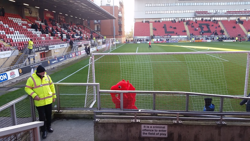 We were at the front of the stand when the final effort went close, with the drum in our possession. It proved too much for Pinder who hit the drum so hard that he snapped the drumstick much to the amusement of the stewards and home fans who were sat on the other side of the segregation. With a broken drumstick and no idea where we were heading to we left the ground.