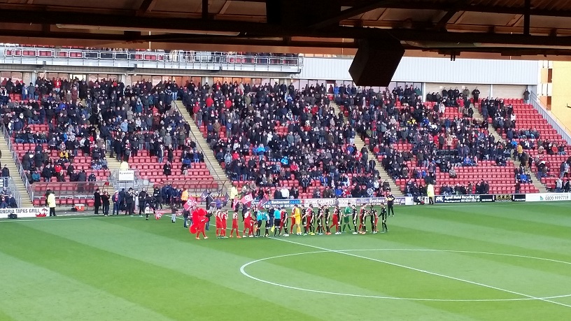 I opted to stand at the back of the Main Stand for the first half, standing with Haydn who had made his own way down from York on the train. It was more civilised standing at the back in the left hand corner, as seemingly a load of idiots had made the trip down from Yorkshire. The young ultra types were out in force, all in their Stone Island regalia displaying attitudes of contempt to anything and everything that wasn’t York City. While the pathetic youths with their skin heads were climbing up the stanchions of the stand, shouting at the police and stewards, I nursed a brew and a pie while flicking through the matchday programme.