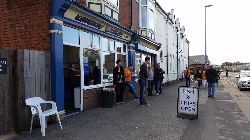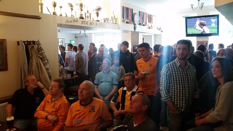 I would highly recommend The Clarendon. It was nice and comfortable inside, the beer was cheap and everybody was wearing their Hull City shirt. It was a sea of amber and black… apart from one bloke who opted to sit there in his Manchester City shirt while he watched his side succumb to defeat at Tottenham. He stood out completely, but nobody wound him up, not even when Joe Hart threw the ball into his own net.