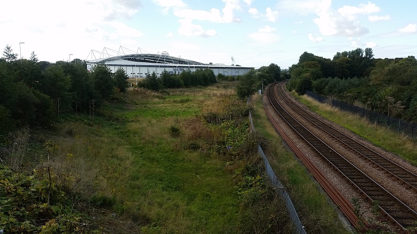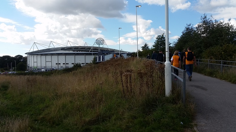 With around 45 minutes to go until kick off, we left the pub and headed up the road towards the ground. It was within view, but it seemed to take forever to actually get there. It felt like a bleak existence walking down winding paths and bridges over the trainlines. The only other form of life around seemed to be a lone horse who was tied up while a Northern Rail train rattled past.