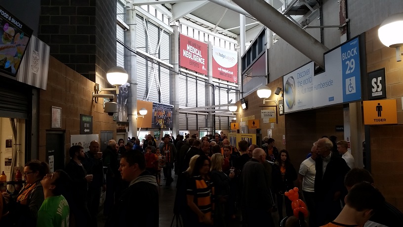 We headed over to the ticket office which turned out to be on the opposite side of the ground from where we were sitting. Collecting our tickets was simple enough and we had time to nip into the club shop where I very nearly bought a beautiful Hull City jumper. I decided the £9 would be better spent on real ale after the match and left empty handed. I didn’t need a Hull jumper for people to know I’d be cheering on The Tigers against Blackburn anyway.