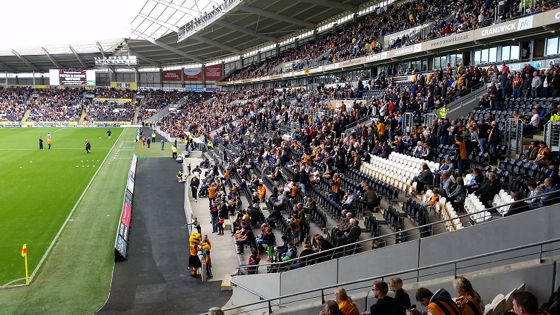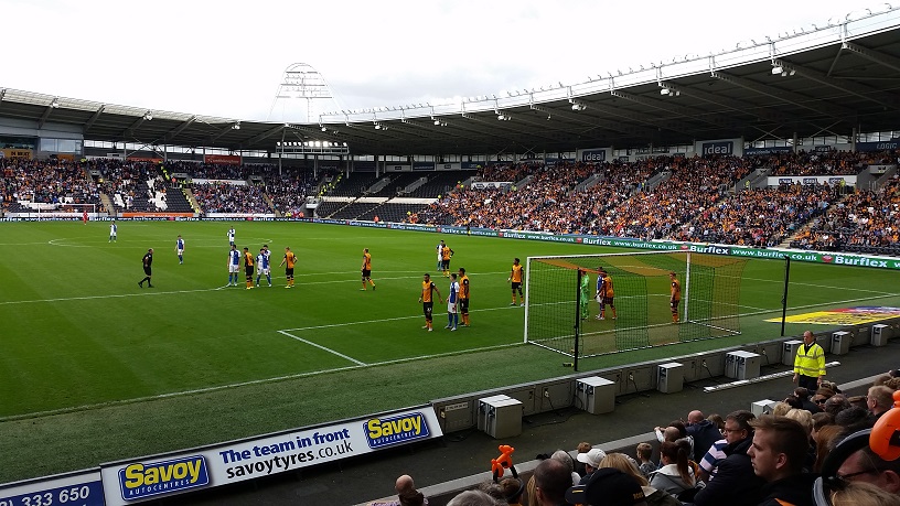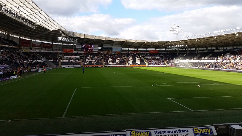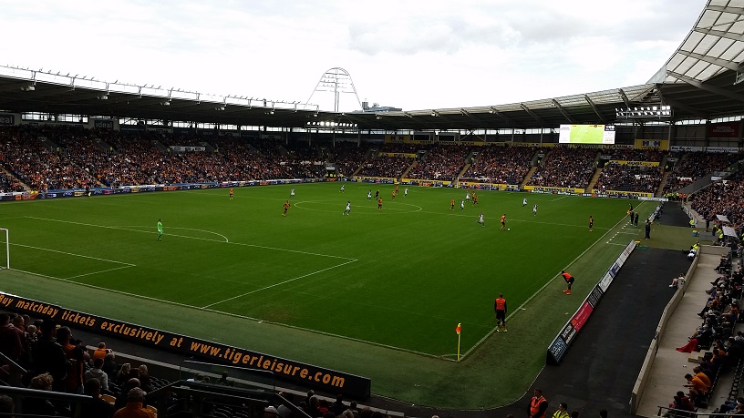 There was a lengthy queue to get into the South Stand as kick off approached. By the time we eventually got in there was just five minutes left in which to get some food; we were going for the full matchday experience as you can tell. I’m always one to try the locally themed food at matches, but the Hull Pie seemed ridiculous and I didn’t bother. How can a BBQ pulled pork pie be labelled a Hull Pie? Was BBQ pulled pork invented in Hull? No. Was it considered to be in a local staple diet? No. This was a city in Yorkshire trying to be like London and it didn’t look or feel right. It was almost as bad as the time I went to Fulham and they sold a food called a Yorkshire Wrap.