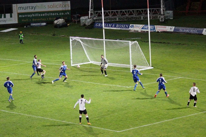 Crowds of around 400 had been attracted to Hull United in weeks leading up to the match so I had high hopes for this local derby. Admittedly, most of this hardy crowd on a miserable Tuesday night were groundhoppers, so there were notepads, plastic bags and flasks of coffee in abundance. A few had made the short journey from Hall Road and I decided I was cheering them on for the night as they – in my opinion – were a proper club. Plus, I had seen them on a number of occasions since moving up to York so I had a bit of a soft spot for them.